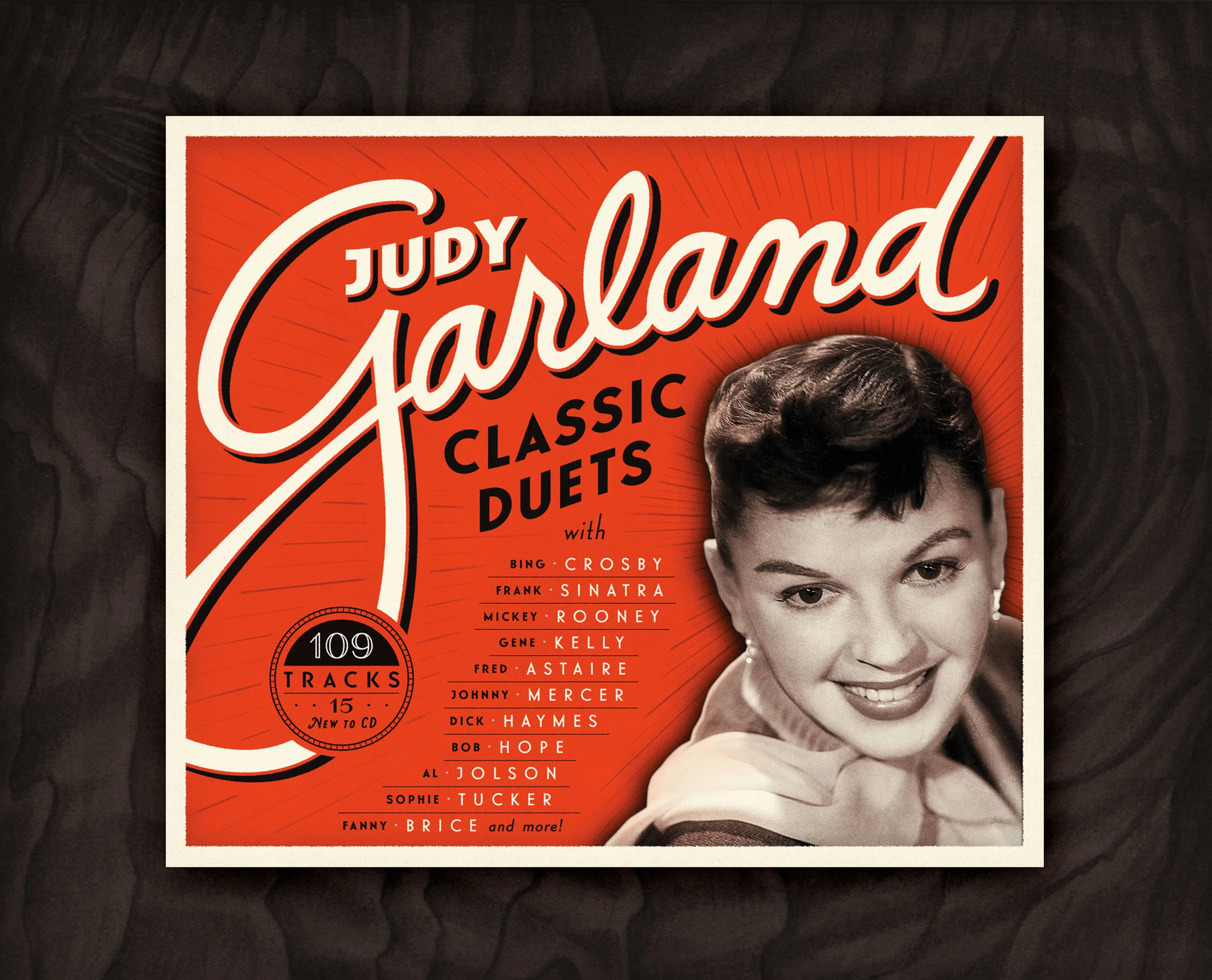 It was thrilling to be hired to design this CD package cover for an exciting set of recordings by the incomparable Judy Garland singing with a roster of legendary recording artists from her time.