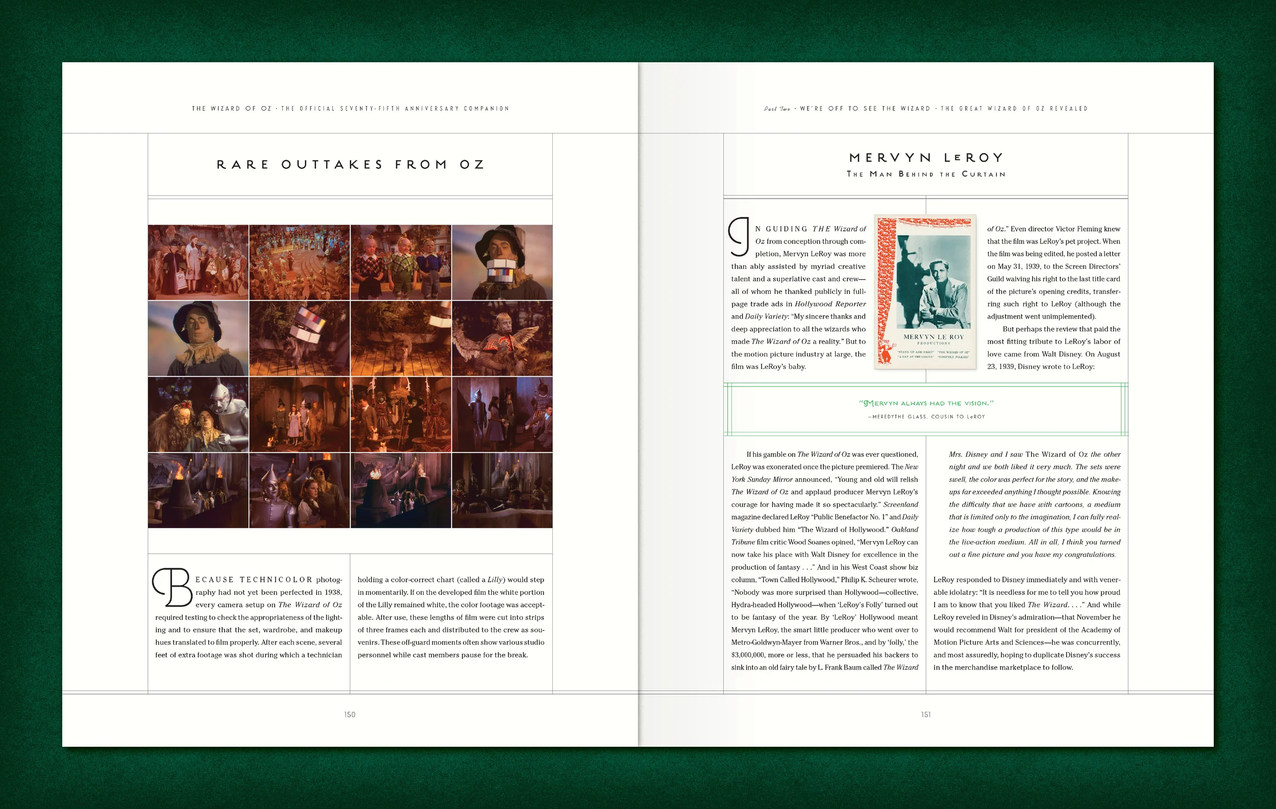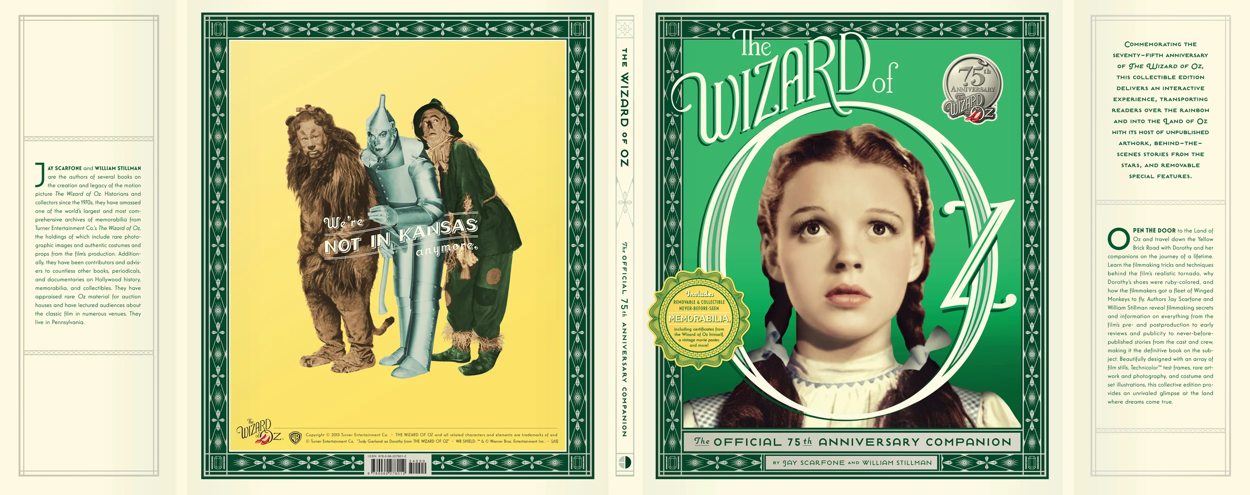 The Wizard of Oz: The Official 75th Anniversary Companion is a deluxe book commemorating the seventy-fifth anniversary of the classic film The Wizard of Oz. Officially licensed with Warner Bros., this collectible book features never-before-seen images and ephemera, thoughtful and expertly-researched text, and special removable features.