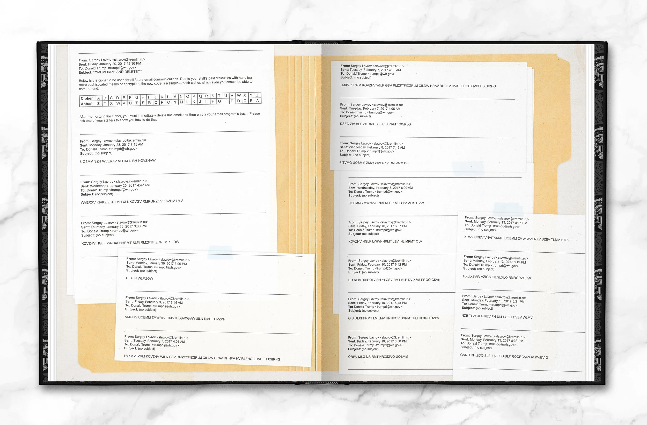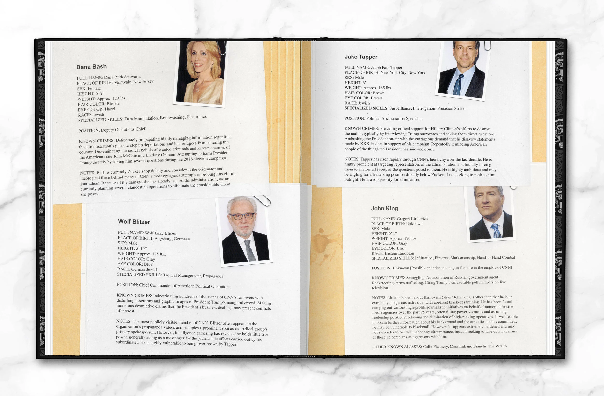 Though there’s nothing comical about this loser and his horrific actions, it was an absolute delight to design a tome containing documents that add further insult to the massive joke this very dangerous clown already is.